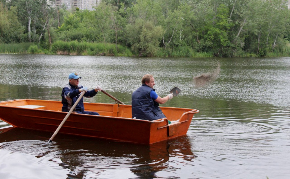 The Kyiv Holosiivskyi District Utility Company, based on recommendations obtained during the monitoring of water bodies, is conducting activities to enhance the state of the Orikhivatsky ponds by introducing a special biodestructor for water bodies.
