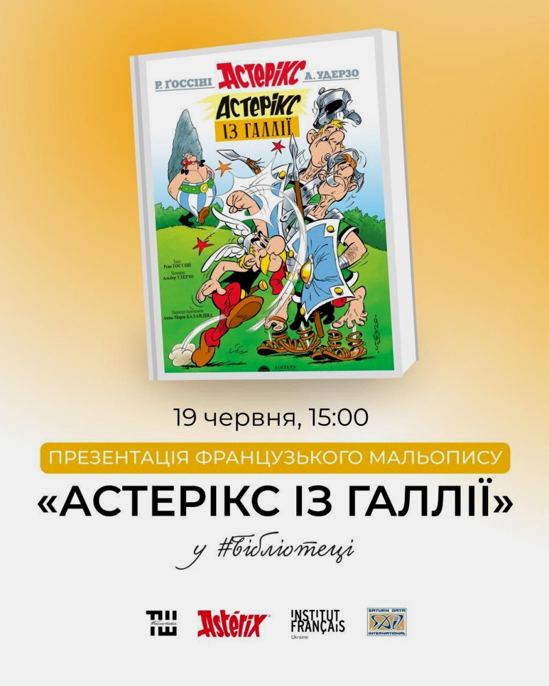 On June 19, at 3:00 PM, the Central Library named after T.G. Shevchenko for Children in Kyiv (25-A Beresteisky Avenue) will host a ceremonial presentation of the first Ukrainian translation of the adventures of Asterix and Obelix — 'Asterix from Gaul'. This was reported by the press service of the Kyiv City State Administration.