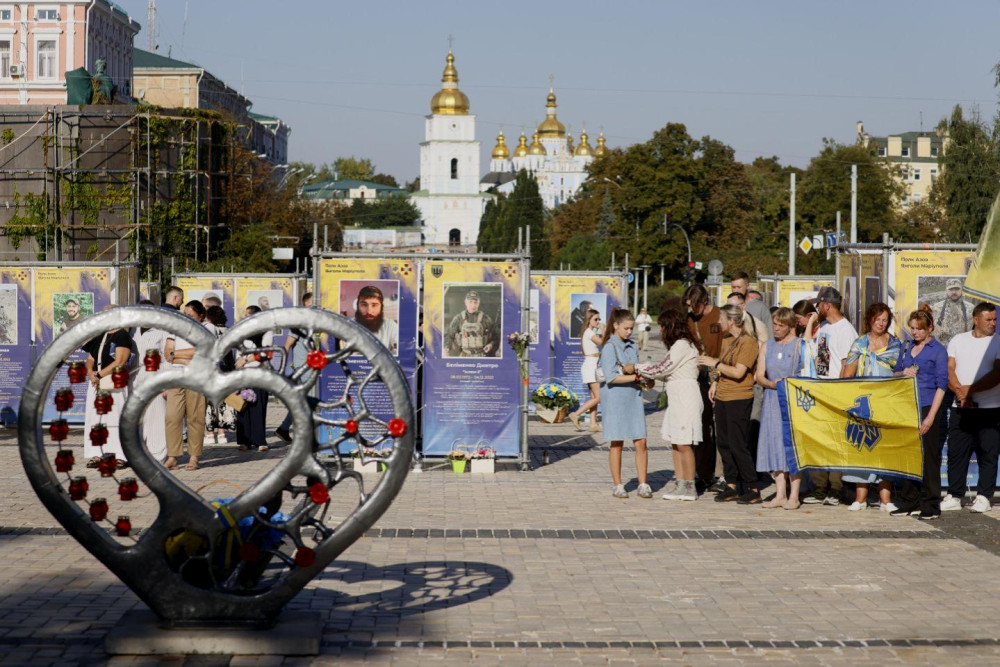 The exhibition was initiated by Vira Lytvynenko, the mother of a soldier with the call sign 'Vector', and the head of the organization 'Hearts of Fallen Defenders of Ukraine'. This is the fourth consecutive year that over 300 portraits of warriors, including fighters from 'Azov' and other units who died in combat, have been showcased at St. Sophia's Square. Hundreds of people came to honor their memory by laying flowers and lighting candles at the portraits.