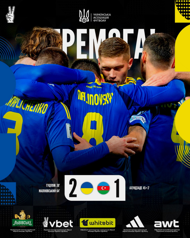 The Ukrainian national football team has achieved its second consecutive victory in the qualifiers for the 2026 World Cup. In the fourth round of the qualification, the 'blue and yellows' defeated Azerbaijan with a score of 2:1.