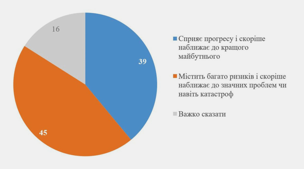 Regarding the impact of artificial intelligence on society, nearly half of the respondents believe that these technologies carry many risks and could lead to serious problems. 39% think that AI contributes to progress and brings humanity closer to a better future. 16% were undecided.