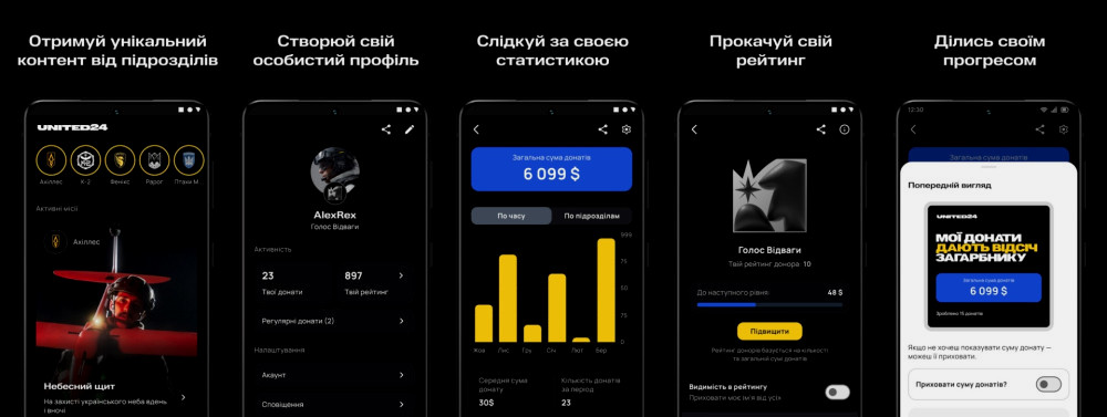 Users can also share their achievements and supported fundraisers on social media and messaging platforms to engage more people in supporting the Ukrainian army.