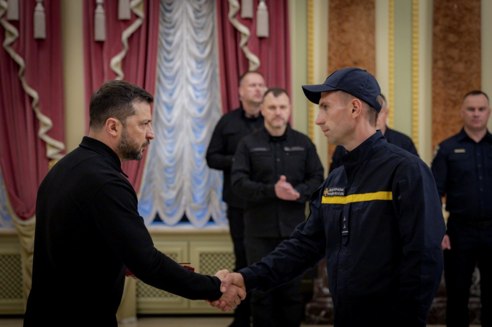 On the occasion of Rescuer's Day, President Volodymyr Zelensky met with the employees of the State Emergency Service of Ukraine, congratulating them on their holiday and awarding them with state honors.