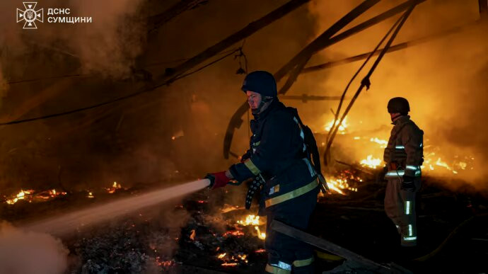 In the night of May 1, Russian forces launched an attack on an industrial facility in one of the districts of the Sumy community, causing a large fire.