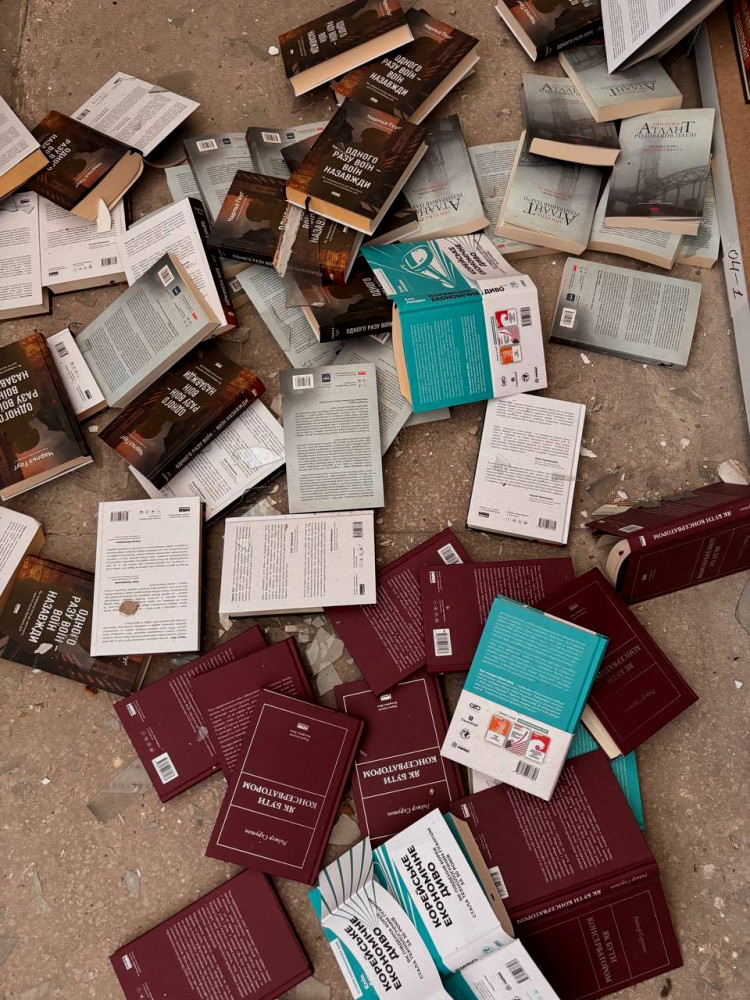 As a result of the shelling and firefighting, some books were damaged. Therefore, the publishing house has temporarily halted order shipments.