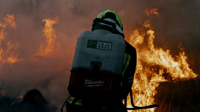 A fire broke out in one of the damaged buildings, and dry grass also caught fire. Fortunately, there were no casualties.