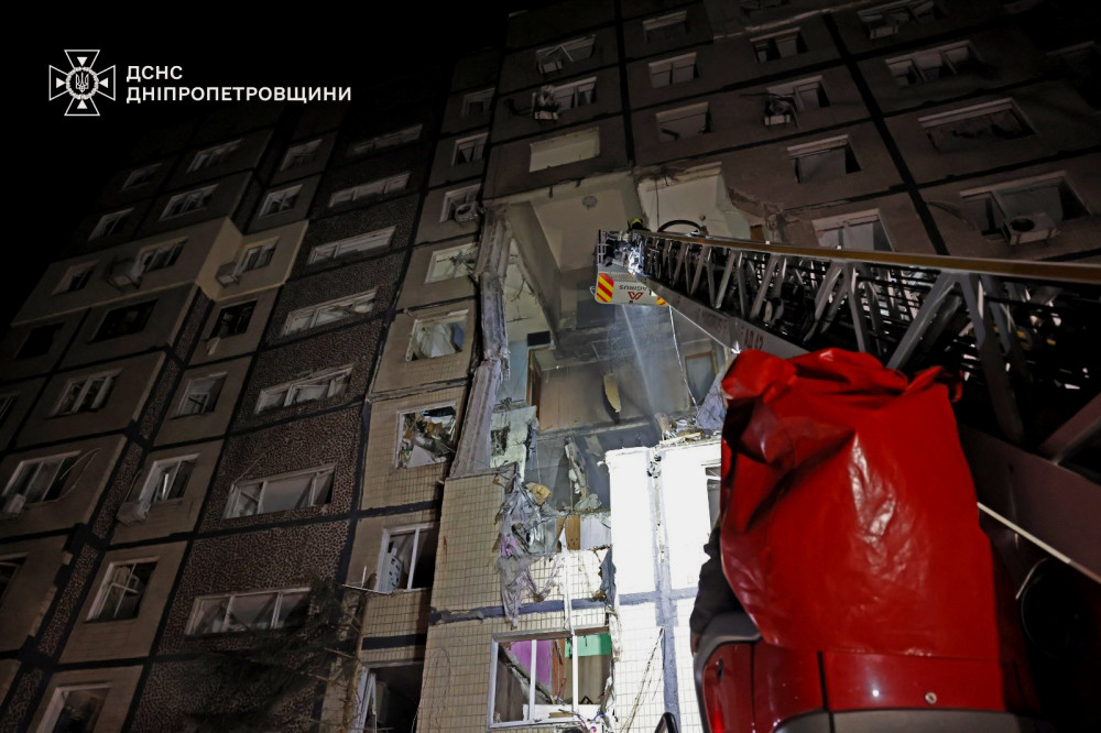 In Dnipro, a Russian drone struck a residential building. Rescuers recovered the body of a deceased person from the rubble. Ten individuals were injured, while approximately thirty were rescued by SES personnel.