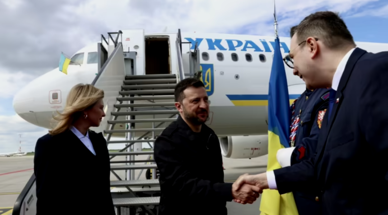 On Sunday, a plane carrying Ukrainian President Volodymyr Zelensky and his wife Olena landed in the Czech Republic.