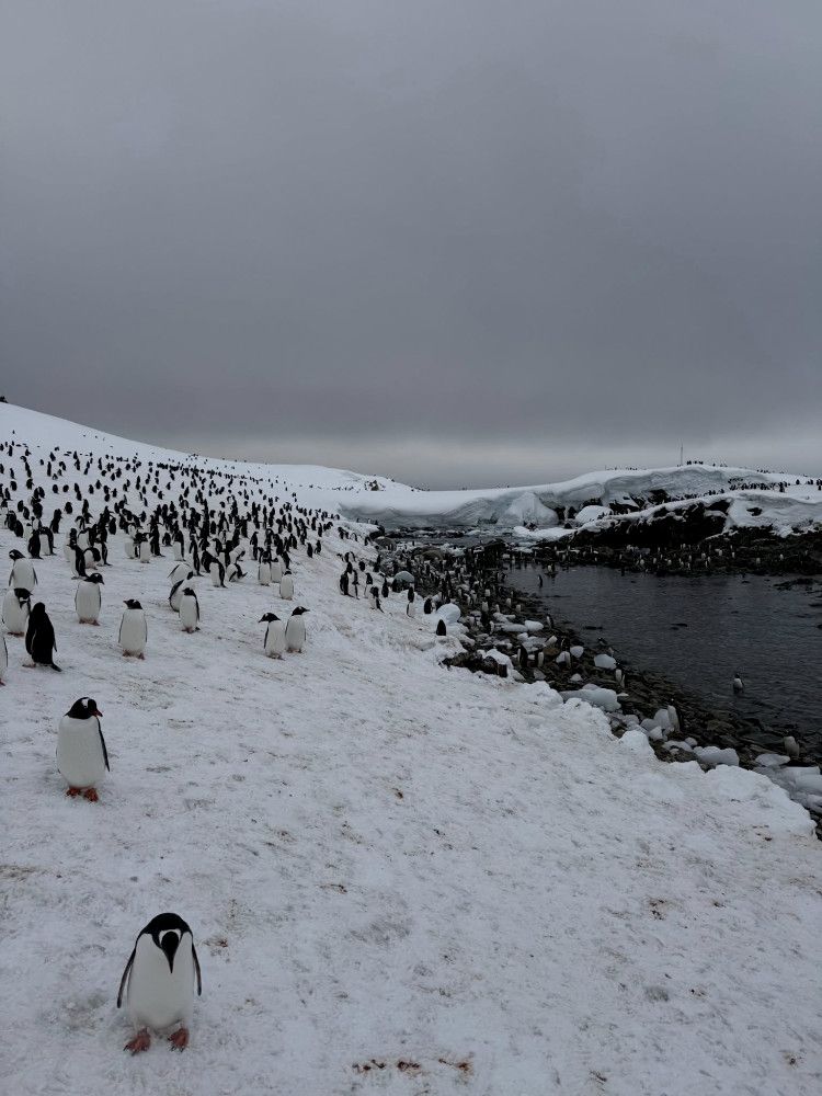 The scientist noted that around four thousand penguins are concentrated at the far end of Galindez, while another three thousand are lined up in a narrow strip along the shore from Penguin Point to the building of the «Academician Vernadsky» station.