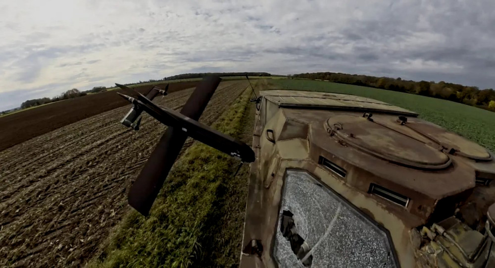 The drone is equipped with four engines and autonomous navigation systems, including the ability to operate without GNSS through map and image matching. The operator confirms target hits before an attack.