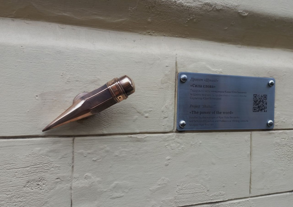 У Києві з'явилася нова скульптура в рамках проєкту «Шукай», що має форму сточеного олівця, присвячена літературній діяльності.