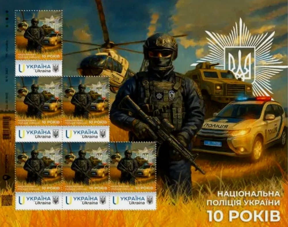Укрпошта представила нову поштову марку, присвячену десятиріччю Національної поліції України.