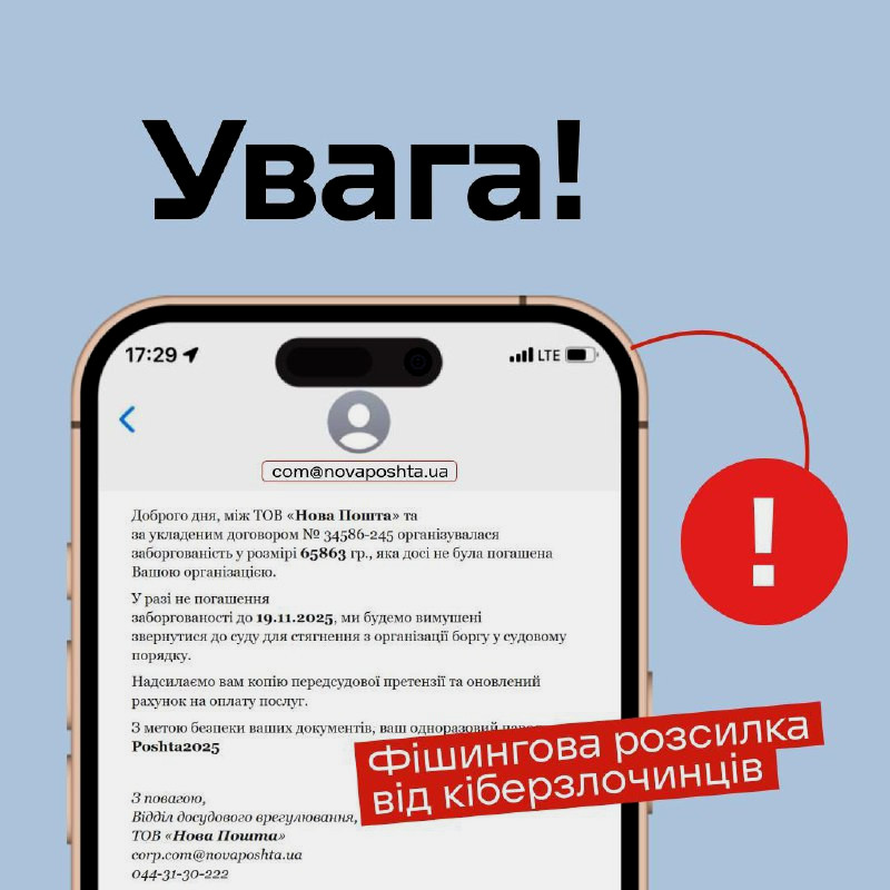 "Підрозділ кібербезпеки Нової пошти вже працює над припиненням цієї фішингової кампанії та взаємодіє з відповідними службами для обмеження діяльності шахраїв", – зазначено в повідомленні.