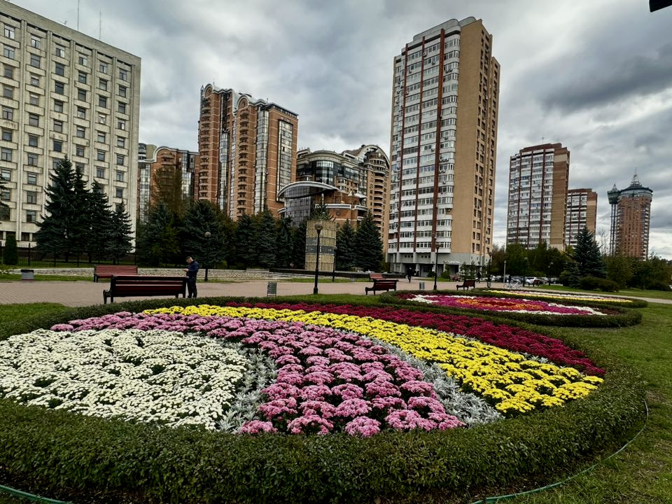 Більше ніж 2,2 тисячі хризантем у насичених жовтих, рожевих, бордових та білих кольорах прикрасили площу Лесі Українки, 1. Про це повідомляє комунальне підприємство "Київзеленбуд".