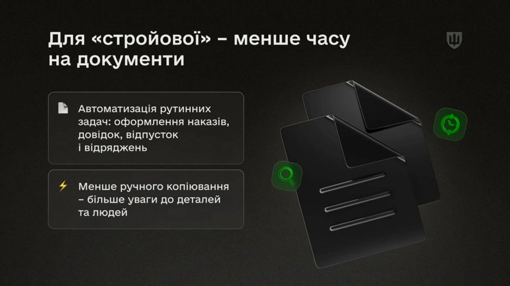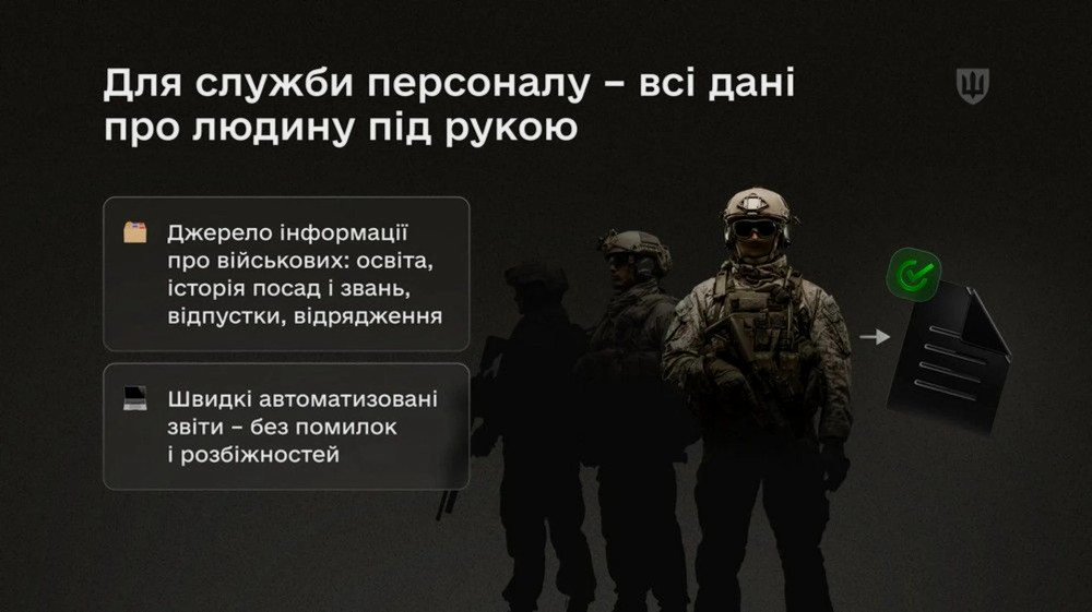 - Для "стройової" – єдина картка військового, яка фіксує всі події служби, забезпечуючи узгодженість інформації про підрозділ.
