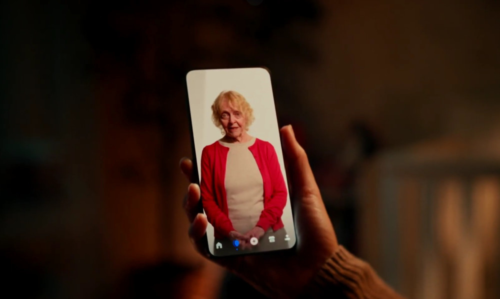 У ролику показано, як вагітна жінка спілкується через телефон із цифровим відтворенням своєї померлої матері. Далі аватар читає казку немовляті, а згодом, коли дитина підростає, вона спілкується зі своєю "бабусею" на шляху додому. Відео завершується моментом, коли дорослий син повідомляє аватару, що вона стане прабабусею.