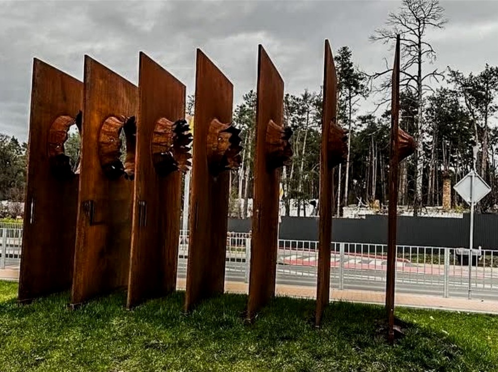 Так і виникла концепція меморіалу – щита, який уособлює мужність мешканців Бородянки, Ірпеня та Гостомеля під час війни.